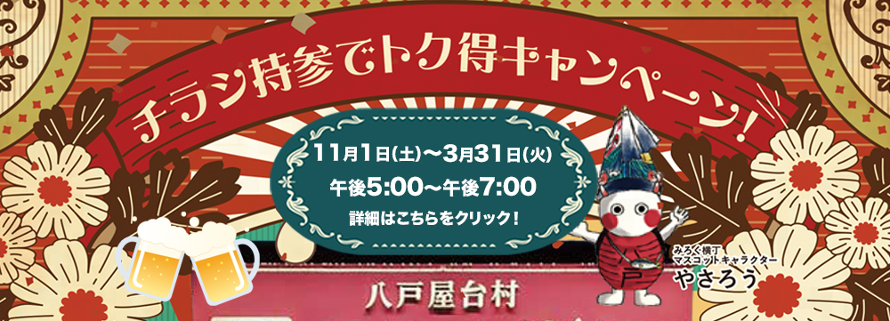 期間中19時までのご来店でトク得キャンペーン! こちらの画面を掲示すると、各店でお得なサービスを受けられます。 ・・・