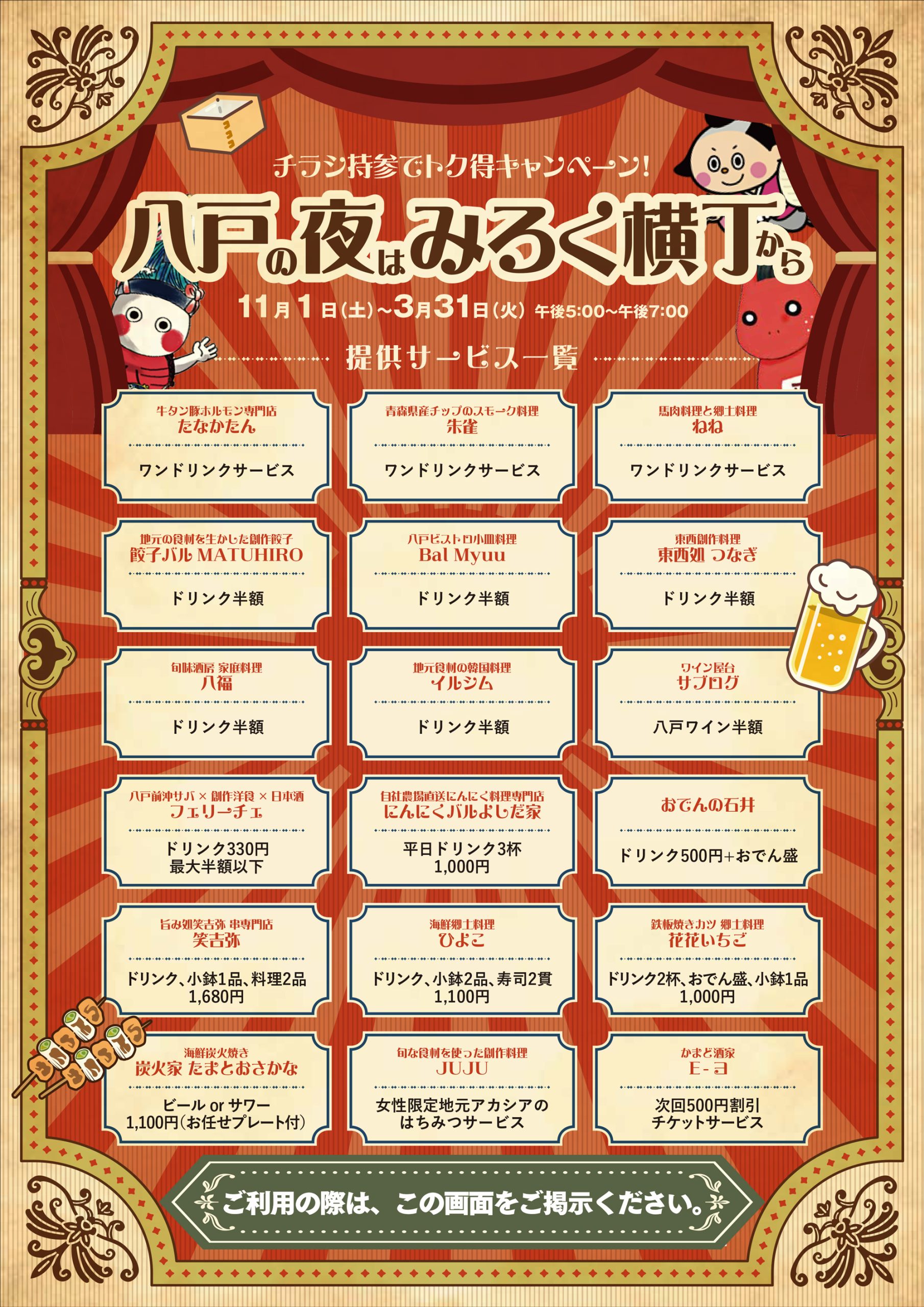 こちらの画面を掲示すると、各店でお得なサービスを受けられます。