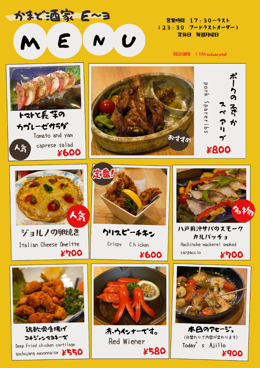| 八戸ポークの柔らかスペアリブ | ¥800 |